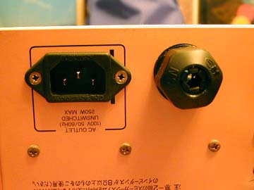 | サンスイパワーアンプB-2103をインレット化しました!つまり、脱着式に改造したということだ。つい最近、オリジナルの直出しケーブルをS/ALABのHHSに交換したばかりだったのだが。やっぱ、電源ケーブルは交換出来た方が楽しい。ケーブル交換できないコンポなんて、ワサビのない握り寿司のようなのもだ。 | さて、左の写真はインレット化する前の状態で、上の写真はインレットを取り付けた状態。サービスコンセントを外して、そこにインレットを嵌め込んだのである。そうすれば、新たに穴を開けるより、はるかに楽なのだ。使用したインレットはフルテックのネジ留め金メッキ。ただ、これは臨時的で、いずれはオヤイデ製に代える予定。 | |||||||||||||||||||||||||||||||||||||||||||||||||||||||||||||||||