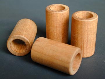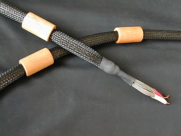 | クーナル水を染み込ませた桜材をくり抜いたのがWP-15。右の写真のようにスピーカーケーブルに通してやる。内径はφ15なので、一般的なスピーカーケーブルや電源ケーブルを通すのにちょうど良い。私のスピーカーケーブルにもぴったりハマった。端末側に近付けてやると効果的らしいので、位置を調整してやる。こういう不思議系アクセサリーは嫌いではないのだが、なんか騙されている気もする。見た目はただの積み木のおもちゃだし。しかーし、使ってみると印象は一転。なかなか良いです。音と音の間に潜むモヤモヤした感じが取り払われたような印象を受けた。ふむ、これはやはりWP-15の効果というべきか。こんな木の筒がオーディオ的にどのような影響を及ぼしているのか。木の物性?クーナルの生体エネルギー?質量付加による防振?はたまたケーブルと床とのインシュレーター的な役割か?まぁ、よく分からないがなかなかいいものだと思った。見栄え的にも面白いし、電源ケーブルなどにも使ってみたくなってきた。そういうわけで、残りのWP-15を全て買い占めるべく翌日に同店を最訪問。しかし、すでに全部売れていた。 | ||||||||||||||||||||||||||||||||||||||||||||||||||||||||||||||||||