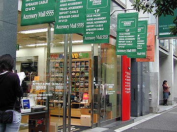 PSE認証のその後5 ダイナミックオーディオ5555の現状 ダイナミックオーディオ5555は秋葉原にある大形のオーディオショップ。5555と書いてフォーファイブと読む。ダイナ系列でも最大規模の店鋪面積。ビル1棟分まるまる5555で、2階より上はハイエンドオーディオとホームシアター関連。まさしくハイエンドオーディオの殿堂という雰囲気で、2階以降はちょっと入りつらい。1階はオーディオアクセサリーフロアとなっている。5555は数年前に新築された店鋪であり、店内はとても綺麗。 |