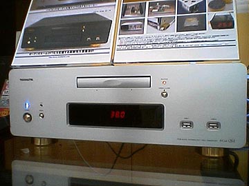 PCとオーディオの融合形 先々月のことになるが、秋葉原のパソコンショップUSER'S SIDEに何気なく立ち寄った。店舗の奥のフロアーに足を進めると、高級CDプレーヤーらしきものがヤマハのAVアンプと一緒に設置されていた。あ、これは池袋のオーディオショップイケオンが製品化を予定していたパソコンCDトランスポートではないか。たしか、このパソコンCDトランスポート、イケオンが開発中とオーディオ雑誌に発売予告がアナウンスされていたのを見たことがある。すでに製品化されていたとは。これ、見た目はCDプレーヤーそのもので、デンオンの往年の名機DCD-S1に良く似た極めてしっかりしたケースだ。