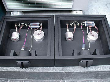 現用のPA-2には、PS300にトリテックの空芯コイル0.3mHが直列で、FT600には同じくトリテックの空芯コイル1.8mHが並列、さらにアメリカシヅキ(ASC)のコンデンサー2.2μFが2本直列で入っている。つまり、PS300側は2kHzの6dB/octローパスで、FT600は4.5kHzの6dB/octと1.8kHzの12dB/octという2段式ハイパスとなっている。なお、このネットワーク定数は長岡先生がPA-2用に算出したものであり、私が考えたものではない。私が使用しているこれらコイルにしろコンデンサーにしろ、性能の良さではそれなりの評価を得ているものをセレクトしたつもりだった。しかしながら、時代は変わる。ここ2〜3年の間にさらなる高性能ネットワークパーツが相次いで発売となったのだ。