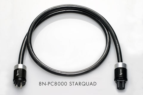 | 余談が過ぎたが、試聴は試聴ルームに用意されていたジャズっぽい女性ボーカルもの(詳細不詳)と、クラシック(ドボルザーク第9番第三楽章)を用いた。電源ケーブルの交換はCDトラポでおこなう。某社長によるとトラポで聞き比べするのが一番分かりやすいらしい。8N-PC8100と8N-PC8000 Starquadの試聴はまさに驚きの連続だった。はっきり言って8N-PC8100は凄い。なにが凄いって、「音楽が熱い!」のだ。前述のシステムの通常の音質は分解能に長け、定位はそこそこ良く、帯域も文句ナシの状態なのだが、やや冷たい傾向があり、音楽を積極的に聴かせるというより、冷静沈着に提示するといった雰囲気がしていた。つまり、システム固有の癖とかピークとかが感じられない反面、面白みに欠けるなーと感じたのだ。ところが、電源ケーブルを8N-PC8100に交換した途端、エネルギー感がまるで変わった。音楽に命が宿り、スピーカーが生き生きと鳴り出した。「同じシステムでこんなに変わるものなんですねー」と私が感想を述べたら、某社長はふっと笑みを浮かべられた。これ、もうエソテリックの在庫は完売し、残るはオーディオ店の在庫のみらしい。30万円近いケーブルだから、オーディオマニアといえども容易には手を出せないのかと思ったら大間違い。相当な人気らしく、中には1人で13本もの8N-PC8100を買い占めたマニアもいるらしい。私は金銭面で8N-PC8100の購入は不可能なのだが、余裕があったならこのケーブルはぜひ欲しいと思った。さて、お次は8N-PC8000 Starquad。このケーブルは一言で言うと「温かみのある」ケーブルと感じた。8N-PC8100の角を落として、わずかに帯域を狭め、中域に程よい温度感を持たせた感じだ。8N-PC8100が熱帯気候なら、8N-PC8000 Starquadは温帯気候だ。カレーに例えると、8N-PC8100が激烈スパイシーなインドカリーなら、8N-PC8000 Starquadは程よい旨みの欧風カレーだ。私の好みは8N-PC8100だ。なお、これらのケーブルについては現在発売中のオーディオアクセサリー114秋号166ページに福田雅光先生の批評記事が載っている。ただ、この記事において福田先生は8N-PC8100を「まろやかな」と評し、8N-PC8000 Starquadを「冴えて研ぎ澄まされた表現」と述べられている。私の印象とは全く逆なのだが、どうしてだろう?