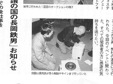 一昨日の事、探しているオーディオ関連の情報があって、吉祥寺の古本屋でオーディオ雑誌の古本をあさっていた。2000年あたりから前後数年分のオーディオアクセサリー誌をバラバラとめくっていたら、100号(2001年春号)の278ページになんか見慣れたスピーカーが映っているではないか。それが左上の写真。あれ!?これは私が1997年のチャリティーオークションで落札した「かるわざ」 じゃないか?!しかも、長岡鉄男先生が「かるわざ」にサインしてる写真・・・ってことは横に映ってるのは私じゃないか!今頃になってこんなツーショットを見つけるとは。AA誌の100号は買ってなかったから気付かなかった。この記事は長岡鉄男先生の逝去を偲んだ追悼特集の中の一コマだ。この写真自体は1997年12月の長岡先生自作スピーカーチャリティーオークション時のもの。この時が先生とお話出来た最初で最後だった。そんな瞬間の写真があったとは嬉しくもあり、先生のことを想うと寂しくもあり。思わずAA誌100号買いました。このイベントの時、落札した「かるわざ」と「キャンセル」の他にも手持ちのAA誌にもサインをしてもらった。それが左のAA誌87号の表紙だ。これは私の落書きではなく、正真正銘長岡鉄男先生のサインなのだ。ただそのまま名前を書いただけというのが先生らしい。ちなみに、かるわざは親が所有している別荘で元気に活躍している・・・はずだったのだが・・・。先週のこと、久々に別荘を訪れた親から電話があり、「かるわざ」に搭載されているFW168のエッジがねずみ(だと思われる)に綺麗さっぱり喰われてしまったとの連絡があった。こんな記事中写真が今頃見つかるとは、きっと「かるわざ」が私に「はよ治せ!」と訴えかけているのかも知れない。