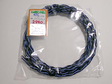 | こちらサエクの新型切り売り電源ケーブルAC-4000。リールにはAC-4000と表示されているが、なぜかシースにはPL-4000と書かれている。どちらが正式名称なのか、私の勘違いなのかどうなのか。それはさておき、AC-4000は私の記憶する限りサエク初の切り売り電源ケーブルだ。価格は実売\2,240/m。定価は\2,800。キムラ無線で1.5m分を購入。入荷したのはたしか3月中旬だった。キムラ無線以外ではテレオンサウンド110(テレオン2号館)にも入荷している。サエクのホームページにもAC-4000は本日時点で紹介されていないようだが、いずれ雑誌などでも紹介されるだろう。これを見つけた時は正直なんじゃこれは!?と思い、ジャケットの縞模様にブルッと震えた。サエクの製品だと知ってさらにびっくり。最近、国内メーカーは威勢がいい。値段も手頃なのがいい。断面を見てもらうと分かる通り、単純なキャプタイヤ構造だ。安直な構造で、構造的には特に惹かれるものはないが、このケーブルの特徴は何といっても外装の透明チューブから透けて見える網組みメッシュの美しさだろう。ひん剥いていないので詳しいことは不明だが、シールドはされていないようだ。説明によるとこのメッシュ自体に電磁波吸収効果があるらしい。木村社長に製品仕様書を拝見させてもらったが、導体断面積は記載されていなかった。推定では2スケくらいだろう。芯線は2芯タイプだ。ケーブル外径はφ12。太くもなく細くもなくといった感じだ。絶縁材については不明。いまさらPVCを使っても音質的なメリットはないから、ポリオレフィン系であることを期待する。まだ買ったまま放りっぱなしにしているので試聴レポートはできないが、この渋い縞縞模様は個人的には気に入った。 | ||||||||||||||||||||||||||||||||||||||||||||||||||||||||||||||||