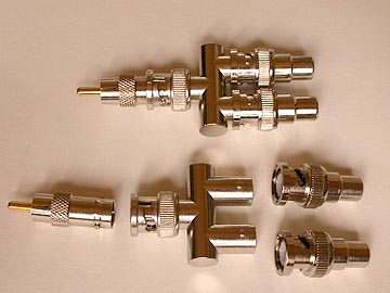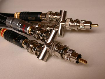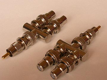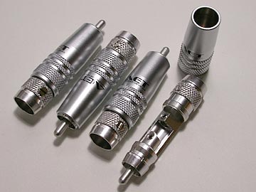 | 上はマジックプラグを分解したところ。この2分岐タイプのマジックプラグは4パーツで構成されている。パーツ関係に詳しい方ならお気付きだろうが、見た目は秋葉原のパーツ屋で1個数百円で売られているRCA-BNC変換プラグをただ組み合わせただけのものに思える。マジックプラグを構成するこれらのプラグは秋葉原で売られているものと全く同一のものなのかは不明。ただ、マジックプラグを構成するプラグにはクライオ処理、それも特殊なクライオ処理を掛けているので元のパーツとは別物になっているらしい。クライオ処理をしない変換プラグを組み合わせてRCA→RCA間に仲介させてもただ音が悪くなるだけだが、クライオ処理されたマジックプラグでは音質が向上するらしい。元のパーツの正確な原価は分からないが、同じパーツを秋葉原で揃えると\2,000/組くらいで揃えられる。クライオ処理するだけで値段が数倍になるのだから、オーディオアクセサリーの世界と言うのはおまじないやに洗脳に近いものがある。クライオ処理は処理前と処理後では外見上全く変化がないのでなおさらだ。それもそのはず、クライオ処理とは物体を極低温に冷やす処理のこと。冷やすことにより原子の並び方が正され、音質が向上する。処理しても外見はなんら変化しない。元々は刃物の切れを良くするためにおこなわれていた処理らしいが、現在ではオーディオ業界でも音質向上のアプローチとして広く知られるようになった。クライオ処理にも温度の下げ方や処理温度など様々なノウハウがあるらしく、オーディオアクセサリーメーカー各社はそれぞれ独自のクライオ処理を名打っている。 | ||||||||||||||||||||||||||||||||||||||||||||||||||||||||||||||||