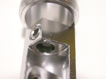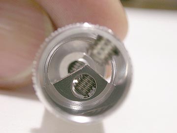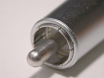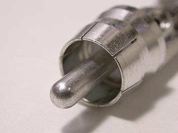 | UCP-HSRのケーブル挿入側から内部を覗く。マイナス側のネジ止め構造が確認できる。プラスマイナスともにネジ止め式を採用しているRCAプラグにはWBT0108やフルテックFP-106Rがあるのだが、これらの先輩プラグの欠点をUCP-HSRは克服しているようだ。どういうことかというと、プラス側配線の邪魔にならないよう、マイナスネジ止め部分の構造を極力低くしている。WBT0108やフルテックFP-106Rでは、マイナスネジ止め構造が出っ張っていて、この出っ張りがプラス配線と干渉してしまうのだ。FP-106Rのマイナスネジ止め構造の問題についてはわが愛しのオーディオアクセサリーインターコネクトプラグに詳しく述べている。UCP-HSRではこのプラス配線の邪魔にならぬよううまく設計されている。適合ケーブル径の最大口径はφ9.5。スリムなプラグの割にはかなり大口径のケーブルも使える。 | ||||||||||||||||||||||||||||||||||||||||||||||||||||||||||||||||
