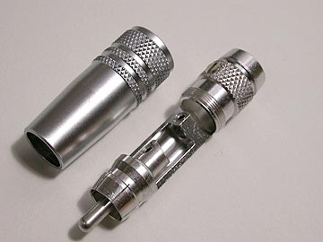 | AETの新型RCAプラグUCP-HSR。同社のSCR-LINESPEC2004に採用されているプラグだ。材質は銅合金ということだが、詳細は不明。銅合金の丸棒から高精度に切削されている。全長52mm。この製品にはポイントが4つある。まず、コレットチャック式だということ。最大径は13.5mm。コレットチャック式RCAプラグとしてはスリムな方だ。次にロジウムメッキされていること。さらに、導体はネジ止め固定による無ハンダ接合できるという点。4つ目は美しさである。5つ目としては音質の良さといきたいところだが、私はまだこのプラグを実際に試してはないので、その辺は今後に。 | ||||||||||||||||||||||||||||||||||||||||||||||||||||||||||||||||