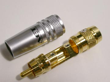 | これもAETの新型RCAプラグの金メッキバージョンUCP-HG。プラスマイナスともにネジ止め構造を採用しているのはUCP-HSRと同様。本体が金メッキされているのがUCP-HSRとの違い。AETの小原さん曰く「本当の金メッキは音質に良い効果を発揮します」とのこと。切れの良いロジウム、温度感のある金、と私的には感じているが、さてUCP-HGとUCP-HSRではどんな違いを見せてくれるか。 | ||||||||||||||||||||||||||||||||||||||||||||||||||||||||||||||||