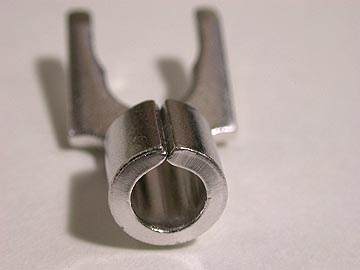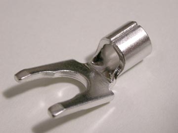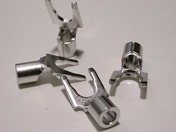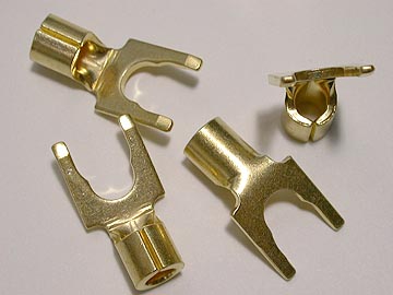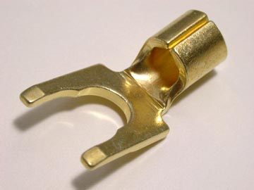 | UFP-HSRのアップ。国産OFCを使っているらしい。ケーブル差し込み口はφ4.5。つまり8スケア相当の撚線が挿入できる。他の多くのYラグもだいたいφ4.5のものが多い。Yラグ(スペードラグともいう)は単純な構造のパーツだけに、材質とメッキ手法が大きなカギとなるはずだ。 | ||||||||||||||||||||||||||||||||||||||||||||||||||||||||||||||||