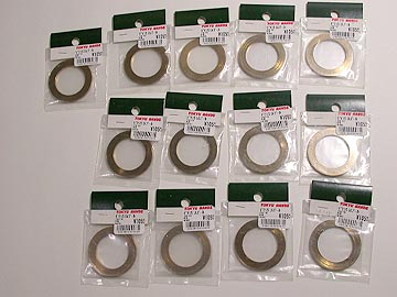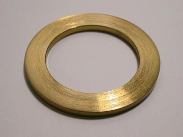 | これは東急ハンズに在庫限り限定入荷したアルミのリング。綺麗な金色のメッキがされている。アルマイトではないようだ。内径φ32の外形φ45で厚みは2t。\100/個。元々の用途は不明だが、素材コーナーにぶら下がっていたので私が全て買い取った。これは現在計画中の1個口コンセントを使った電源ボックスの飾りに使用しようと思っている。私はこういう意図不明の素材を見つけては買込んでおり、素材の収納箱はすでに満杯状態。これもいつ日の目を見ることやら。 | ||||||||||||||||||||||||||||||||||||||||||||||||||||||||||||||||