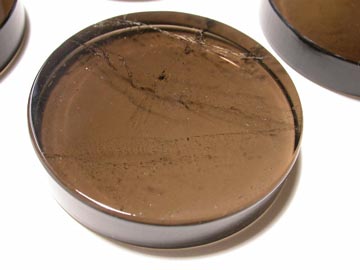 | 水晶インシュレーターというと一般的には水晶粉末を高温で再焼結させたものを整形して作られるが、アコリバのRIQ-5010は水晶原石から直接切り出した点に目新しさがある。私は他の水晶インシュレーターを使ったことがないので、このRIQ-5010がどれほどの優位性を持つのか分からないが、この茶褐色の円盤に独特の魅力を感じるのは私だけではないはず。RIQ-5010は天然石らしく、透かしてみるとスジ状や斑点状の模様がけっこうある。なんだ汚らしいなと思わなくもないだろうが、心配御無用。横から、つまり円周方向を見ると真っ黒に映る。インシュレーターとして使う場合、横からしか見ないので、この色ムラは気にならないのだ。現在、このインシュレーターはDV-AX10に使っているが、なかなかどうして、音色が艶やかで有機的になったではないか!雑誌のまじないが私を洗脳しているのかもしれないが、いや、このインシュレーターはたしかに音色に好ましい変化をもたらすようなのだ。今度、じっくり詳しい検証をしてみたいものだ。