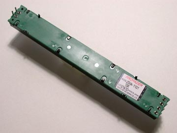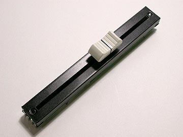 | こちらは東京光音のスライド式フェーダー。秋葉原ラジオデパートの海神無線で購入。2SVA-1101という型番。ステレオタイプなので、左右の音量をこのフェーダー1つでコントロールできる。なぜこんなものを買ったかと言うと、自作のフェーダーボックスを作るため。フェーダーボックスはパッシブコントローラーとも呼ばれる。簡単に言えば電源を必要としないプリアンプだ。スライドフェーダーは本来、ミキサーなどに使われるものなのだが、オーディオ用のパッシブコントローラー用のボリュームとして使ってもなんら差し支えない。特に、この東京光音の製品はオーディオ用としても通用する性能らしい。原田加工所のパッシブコントローラーVF-203にも東京光音のフェーダーが使われている。実は最初、VF-203に使われている東京光音スライダーを探していたのだが、そもそも東京光音のスライダーは業務向けにしか販売されておらず、入手が難しいと分かった。ただ、海神無線では扱っているという情報を得て、同店を訪問。同店のお兄さんはVF-203に使われているスライダーについても良く存じておられ、欲しければ東京光音から取り寄せますよと言ってくれた。ただし、1個15,000円もするとのこと。モノラル仕様なので、ステレオなら2個必要。となると3万円も掛かってしまう。さすがにいきなりそこまで投資する気にはなれないので、同様のグレードのスライダーでもっと安価なものはありませんかと尋ねると、東京光音のスライダーでいいのがあるので、近々まとまった数を仕入れますとのこと。それで入荷したのがこのフェーダーだった。2SVA-1101は通常のフェーダーに比べてストロークの感触がずっしりと重く、俗にハイトルクと言われる仕様になっている。これは傾斜している箱に据えた場合でも定められた位置を維持できるようにするためだ。ハイトルクでないスライダーだと、傾斜のある箱に取り付けた場合、振動などでボリュームがずり降りてきてしまうらしい。さて、この2SVA-1101を使ってどんなフェーダーボックスを作ろうかと現在思案中。 | ||||||||||||||||||||||||||||||||||||||||||||||||||||||||||||||||