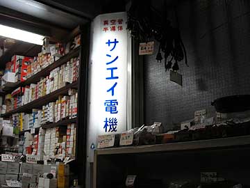 | これも特に目新しくはないが、ラジデパ3階にあるサンエイ電機。昨年は長期に渡り一時閉店していたが、今年になってようやく復帰した。ここのメインは真空管なのだが、米国MIL規格もののケーブルなどが豊富に揃っている。価格は標準的。 | ||||||||||||||||||||||||||||||||||||||||||||||||||||||||||||||||