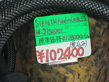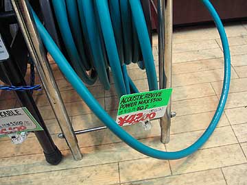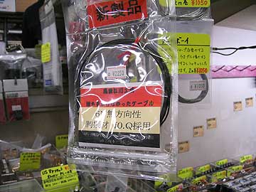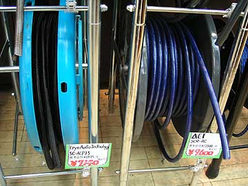 | ラジデパ2階の海神無線には江川工房のフォック使用6N無方向ケーブルが入荷。2mで\2,250。詳細は現在発売中のオーディオアクセサリー誌117号(夏号)の江川三郎実験室をご覧あられたい。従来からあった6N無方向性撚り裸線にフォック制振材を直接塗布し、絶縁チューブを被せたもののようだ。導体構成はφ0.2×6本撚り。右上はラジデパ2階の鈴喜デンキがある通路。 | ||||||||||||||||||||||||||||||||||||||||||||||||||||||||||||||||