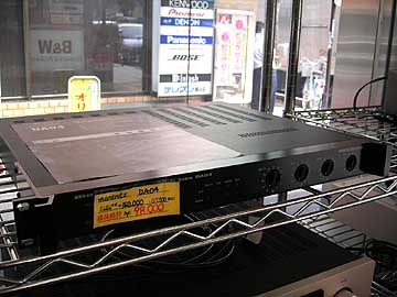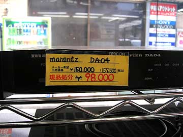 | さて、こちらはテレオンサウンド110の1階入り口付近に展示販売されているmarantzのDA04だ。DA04はトライパスのデジタルアンプチップを搭載した4チャンネルデジタルアンプ。見ての通り、業務用のアンプで、背面端子は安物で、天板も薄っぺらいことこのうえないのだが、かの鈴木哲氏が設計されたということで、発売前後にはオーディオマニア間で話題になったものだ。しかし、最近は影を潜めてしまったように見受けられる。なにせこのDA04、ずいぶんなお値打ち価格で店頭に並んでいるにも関わらず、ここ3ヶ月間売れる気配がないのだ。お金の余裕があれば、私が買いたいくらいなのだが。 | ||||||||||||||||||||||||||||||||||||||||||||||||||||||||||||||||