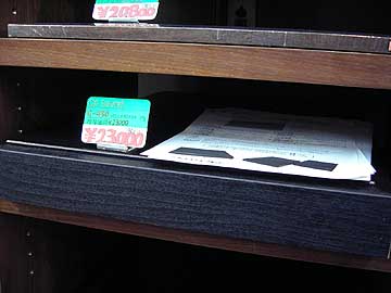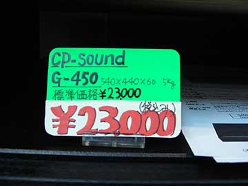 | さらに、テレオンサウンド110の新製品入荷状況。こちらはCP-soundのG-450。CP-soundはたしか台湾のメーカーだったと思う。G-450の外径寸法はW540×D440×H60。重量は5kg。MDF/ウレタン樹脂などを積層したオーディオボードだ。値段の安さが魅力かも。ただ、高級感は感じられない。このボードについてはオーディオ雑誌でも取り上げられているので、興味を持っている人も多いだろう。私の行きつけの店で最初に入荷確認できたのはオーディオユニオンお茶の水店だったが、5月末にはテレオンにも入荷。G-450の他に、小サイズのG-230(W390×D290×H60 重量3.5kg)も入荷している。こちらは主にスピーカーのベース用途を想定しているらしい。 | ||||||||||||||||||||||||||||||||||||||||||||||||||||||||||||||||