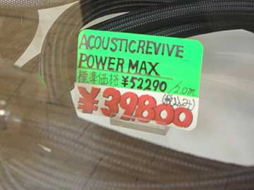| お次はテレオンサウンド110(テレオン第2店)。今まで同店での撮影は躊躇していたのだが、今回は3階フロアー長の原さんご了承のもと撮影させてもらった。さて、左上はクライオオーディオテクノロジーのSC-APC3.5切り売り電源ケーブル。切り売り実売\7,140/m税込。当然ながら、クライオ処理されているらしい。導体には無方向性OFCを採用。江川先生のアドバイスだろうか?芯線は3芯の撚り線。導体断面積は3.5スケア。ケーブル構造はごくごくオーソドックスなキャプタイヤ構造で、最外装にはポリエステル系らしき黒いメッシュチューブが被せてある。同社ホームページよるとノイズシールドがなされていると記述されているが、私が断面を見た限りではシールドらしいものは見受けられなかった。ゴム製の介在物かメッシュチューブにシールド効果のある粉末が練り込まれているのだろうか。なお、5月末時点では切り売りSC-APC3.5はテレオン110にしか入荷していない。そうそう、左上写真にあるように、AETのSCR-ACがテレオンにも入荷。切り売り実売\9,600/m税込。木村無線より\400安く価格設定されている。これで、秋葉原でSCR-ACの切り売りが買えるのは、キムラ無線とテレオンサウンド110の2店舗になった。右上はテレオンサウンド110に入荷したアコースティックリバイブのPOWERMAX5500。オヤイデ電気に次いで、秋葉原で2店舗目の入荷だ。価格は切り売り実売\4,300/m税込。テレオンの価格設定は秋葉原最安であることが多いので、自作ケーブルマニアは要チェックだ。 | ||||||||||||||||||||||||||||||||||||||||||||||||||||||||||||||||