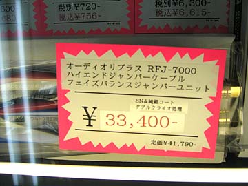 | 秋葉原ラジオ会館キムラ無線に入荷したバイワイヤリングアダプター。オーディオリプラスのRFJ-7000というもの。正式にはフェイズバランスジャンパーユニットというらしいが、要はバイワイヤリングのアダプターだ。手持ちのSPケーブル端末にこれを接続してやると、バイワイヤリングが実現すると言う代物。この樹脂製ブラックボックスの中には逆起電力を抑え込む回路が内蔵されているらしい。最近、逆起電力防止やら、バイワイヤリングアダプターやら、この手の製品がちらほら見受けられるようになりましたな。福田先生の自作バイワイヤリングアタッチメント製作記事がきっかけなのだろうか。 | ||||||||||||||||||||||||||||||||||||||||||||||||||||||||||||||||