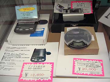 右はキムラ無線で売られているデジタル針圧計3種。奥の方のはオーブの針圧計SFM-1。私はシュアーの針圧計の使いにくさに癖々しているので、デジタル針圧計を欲しいと思っていた。ところが従来のデジタル針圧計は高価で、購入するに至らなかった。それがここ1年余りでデジタル針圧計が次から次へと発売され、価格も手頃になってきた。そんな中、このBD-DS350は業界最安値で登場してきた。BD-DS350は値段も手頃だし、他の針圧計と性能的には大差ないだろうから、私も近々これを購入しようと思っている。 |