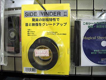 | こちらはキムラ無線に入荷したサイドワインダーのリニューアルバージョン。その名もSIDEWINDER||。はっきりとした素材は不明だが、旧来のサイドワインダーとは内容がずいぶんと違うようだ。旧来、熱研から発売されていたサイドワインダーはダイニーマ繊維をテープ状にしたもので、裏面がダイニーマ特有の白色だった。ところがこのサイドワインダー2は、表裏ともに黒色をしているようで、発売元もナノテックシステムズに変更されている。もっとも、ナノテックシステムズの製品は、製造元が熱研であるモノが多いので、このサイドワインダー2も製造元は熱研と思われる。サイドワインダー2はまだ発売間もないので、少なくとも私はキムラ無線でしか見かけていないが、順次、他のオーディオ店にも入荷するだろう。それと、このサイドワインダー2を電源ケーブルに応用した例が、先週発売された季刊オーディオアクセサリー秋号(118号)の旬の音本舗福田屋130ページ目に掲載されている。 | ||||||||||||||||||||||||||||||||||||||||||||||||||||||||||||||||