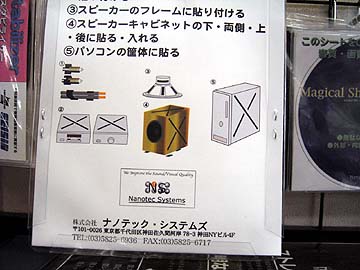 | キムラ無線に陳列されているナノテックシステムの商品群。まぁ、次から次へと矢継ぎ早に商品を出して、よくネタが尽きないものだ。右はキムラ無線で売られている大人の科学スピーカー工作号、その見本。スピーカーの仕組みを理解するのに、この工作キットはうってつけかもしれない。 | ||||||||||||||||||||||||||||||||||||||||||||||||||||||||||||||||