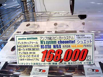 | こちらはオーディオユニオンお茶の水店に先月陳列されていたM'ssystemのアンプ内蔵スピーカーシステムchouette!。商品札を見ると、chouetteはシュエットと読むらしい。店頭ではiPodを接続して音出しをしていた。私自身はあまりこのスタイルに惹かれるものは感じないのだが、新進気鋭のブランドがオーディオ市場を賑わすのは、大いに歓迎すべきことだ。