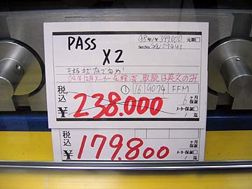 | こちらもフジヤエービックに陳列されていたPASSLABORATRYのプリアンプX2。これは5月頃から置いてあり、今月初旬辺りに売れた。みじんこの次期プリアンプにいいかなと思ってここ数ヶ月の間X2を探していたのだが、天板にかなり目立つ傷があったので、迷いつつも購入を控えた。んで、私は結局、PASSのALEPHLを購入することになったのだ。 | ||||||||||||||||||||||||||||||||||||||||||||||||||||||||||||||||