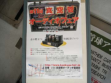同店の2階入り口に貼ってあったポスター。第11回真空管オーディオフェアの案内だ。今回もぜひ訪れたいと思っている。原田加工所ブースを訪れて、パッシブコントローラーVF-203の進展状況を聞かねば。私が以前、同社に電話確認したところ、同社社長がご病気ということで、VF-203の製造は一時中断しているということだった。製作総予定数は12台ほどで、すでに8件ほどの注文が入っているとお聞きした。同社はホームページがないので、オーディオ雑誌で得られる以上の情報が少ないのだ。 |