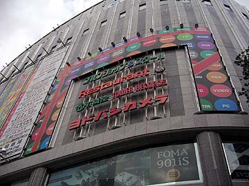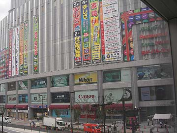 | 反対側を見上げると、ヨドバシカメラマルチメディアAkibaがそびえ立っている。潰れゆく店、新たな船出を迎える店・・・秋葉原の移り変わりを肌で感じる今日この頃。ヨドバシカメラマルチメディアAkibaの進出については、歓迎する店と戦々恐々としている店と、反応は実に様々。いずれにせよ、電気街方面のお店達もあぐらをかいているわけにはいかないはずで、店舗をリニューアルしたり、広告をうったり、様々な対抗策を取っている。私が感じるところ、このヨドバシカメラ進出とは関係なく、ここ半年ほどの間で秋葉原の人種が確実に変わってきているということだ。20代くらいの若い女性が非常に多いのだ。明らかにOLや学生ではなく、かといって買い物をしにきたわけでもなさそう。推測するに、ここ半年ほどで急速に増えてきたメイドカフェやマンガ喫茶、チェーン店のカフェなどの店員さんではないかと思う。秋葉原にメイドカフェが最初に出来たのは、今から4年ほど前だったと記憶している。最初は、よくぞこんな変なコスプレカフェなんぞ作りおって、誰か入る奴いるのかね、なんて思ってたが、今ではすっかり秋葉原に定着している。秋葉原駅前でメイド服を着た女の子がチラシを配っていても、全く違和感を感じなくなってしまった。ま、需要と供給が見事に一致しているのだから、秋葉原にはこの先、ますますメイドカフェが増え続けるものと思われる。 | ||||||||||||||||||||||||||||||||||||||||||||||||||||||||||||||||