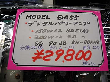 | 若松通商秋葉原ラジオ会館店に入荷したマランツの業務用パワーアンプMODEL DA55。トライパスのデジタルアンプICを搭載。価格は29,800円。主にカラオケ店でのカラオケ用アンプとして流通しているらしい。説明書にも、カラオケ装置との接続について記載があった。このDA55、店の奥に引っ込められている時もあるので、気になる人は店員さんに尋ねてみるとよい。店の奥から出してくれる。なお、DA55の店頭在庫は無い。受注してから、メーカー側でトランスを搭載して、出荷するらしい。 | ||||||||||||||||||||||||||||||||||||||||||||||||||||||||||||||||