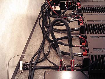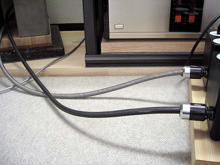 | 大きく変化したのはケーブルで、まずはスピーカーケーブルがPADの最高級グレードTANTUS。詳しい事は聞かなかったが、改めて写真を見る限りではバイワイヤ仕様のようだ。ガッツさん、昨年までは金子式の6N銅帯自作SPケーブルを使われていた。写真には写していないが、ラインケーブルはほぼ全てカルダスのゴールデンリファレンス(Golden Reference)に変更されていた。昔はモンスターケーブルを使われていたはずだ。ゴールデンリファレンスはカルダスの最高級グレードのケーブルで、たしかステレオペア定価十数万するはず。高額にも関わらず人気のあるケーブルだ。その人気にあやかって、ゴールデンリファレンスの偽物ケーブルまで現れたらしい。ガッツさんのシステムに使われているゴールデンリファレンスの本数、実に5組10本であるから、投資額は凄まじい。ちょっとケーブルに金かけ過ぎなのではないかと思えるのだが、それは私のひがみであったりもする。P-70とD-70の間を繋ぐデジタルケーブルには、AETのURDG75spec2004を追加されていた。P-70とD-70は2本のデジタルケーブルを使用する事で、クロック同期が図れるようになっている。つまり、1本を音声信号用に、もう1本を同期クロック信号用に使うのだ。URDG75spec2004はクロック同期信号用に追加されたとのことで、飛躍的な音質向上効果があったとのこと。AETのデジタルケーブルはインピーダンスの正確さに定評があるから、正確な信号伝送には最適なのだろうが、なんとも贅沢な使い方だ。 | ||||||||||||||||||||||||||||||||||||||||||||||||||||||||||||||||