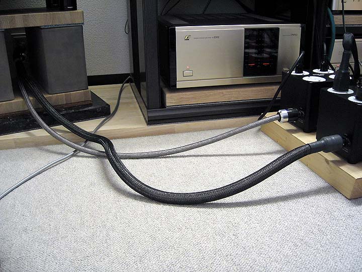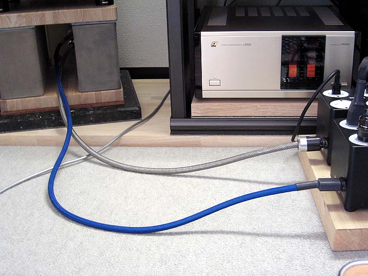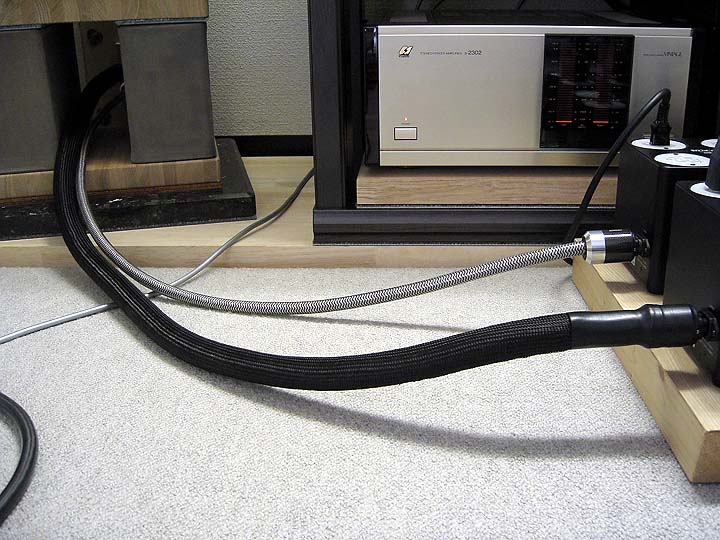 | こちらはNo.85 Ballista。ケーブルに富士電線VCT3.5を使用。衝撃吸収チューブを被せ、最外装にはナイロンメッシュを被服。極太仕様がただならぬ様相を呈している。こちらもやはり、PC8000に比して明るい方向へ変化する。私的には好きな方向性なのだが、長年にわたり構築されてきたガッツさんの“熟した音”とはニュアンスがかなり変化する。ここで思ったのが、機器へ直接繋げているわけではないこのケーブルでも、音調ががらりと変化する事だ。電源ケーブルのなんと影響の大きい事か。No.85 Ballistaもこの後、ガッツ邸でエージングをおこなってもらい、大きく音質向上することとなる。 | ||||||||||||||||||||||||||||||||||||||||||||||||||||||||||||||||