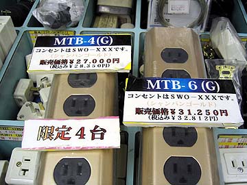 | こちら限定販売のオヤイデ電気電源ボックスMTB-4GとMTB-6G。これは先日開かれたハイエンドショウ東京2005での売れ残り。ケースを金色に塗装している。オヤイデの遊び心だ。同電源ボックスのケースは真鍮性なので、アルマイト仕上げで金色を発色させているわけではない。コンセントにSWO-XXXを搭載してこの値段ならかなりお買い得かも。 | ||||||||||||||||||||||||||||||||||||||||||||||||||||||||||||||||