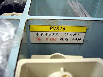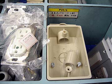 | ついでに、オヤイデの定番取り扱い商品をご紹介。これは、福田先生が推奨されている未来工業の樹脂製コンセントボックス。PVR16という型番になっている。1個430円。別にオーディオ用というわけではないが、他の樹脂製コンセントボックスに比べコンセント取り付け台座がしっかりとしているため、コンセントの固定強度に優れている。取り付けネジはM3だ。 | ||||||||||||||||||||||||||||||||||||||||||||||||||||||||||||||||