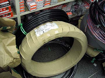 | こちらはフジクラのCV-Sケーブル。CV-Sはオーディオ用ではなく、工業用の強電ケーブルの一種。しかしながら、オーディオ用としてもなかなか素晴らしい音質を有している。非常にふと気づいたのだが、2ヶ月ほど前のオヤイデ入荷分からフジクラCV-Sの外装シースが変更されたようなのだ。従来のフジクラCV-Sは艶消しっぽかったのだが、最近の入荷ロットは半艶になった。柔軟性はそれほど変化がないようなのだが、音質にも何らかの変化があるやもしれない。詳細に検討するために、とりあえず数メートル分購入した。 | ||||||||||||||||||||||||||||||||||||||||||||||||||||||||||||||||