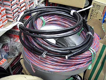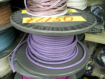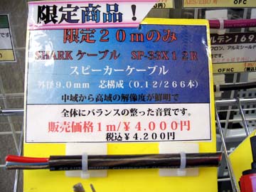 | こちらはディーバス14-4CT。私の知る限り、秋葉原及び中央線沿線のオーディオ店で14-4CTを在庫しているのはオヤイデ電気だけ。雑然と積み上げられているのがオヤイデ電気らしい。最近でこそ、オヤイデ電気はオーディオ関連にずいぶんと傾注しているが、元来は電工関連業者への卸小売りが主である。右上は在庫限りの販売品、シャークワイヤーのスピーカーケーブルSP-33X12R。 | ||||||||||||||||||||||||||||||||||||||||||||||||||||||||||||||||