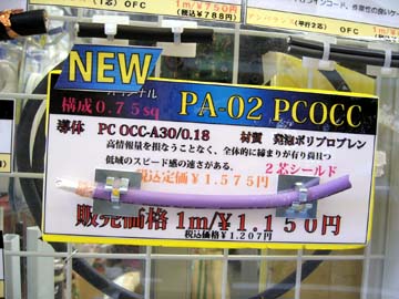 | これは今月の新製品、オヤイデオリジナルの切り売りラインケーブルPA-02PCOCC。低誘電素材である発泡ポリプロピレンを絶縁材に採用。充填材には電磁波吸収素材を練り込んであるとかとも聞いた。 | ||||||||||||||||||||||||||||||||||||||||||||||||||||||||||||||||