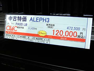 | つい数日前、アバック秋葉原店にPASSLABSのALEPH3が入荷した。同機は私も所有している。12万円はお買い得だ。現在、オーディオユニオン新宿店にもALEPH3が入荷しているが、そちらの値付けはもっと高かったはず。 | ||||||||||||||||||||||||||||||||||||||||||||||||||||||||||||||||