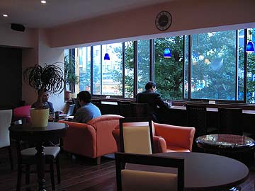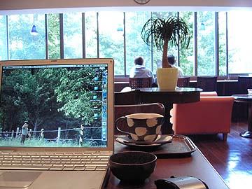| コーヒーはこんなカップ。これ以外にもいろんなカップで出てくる。んでもって、ここの飲み物は高くないのだ。たしか、コーヒー1杯260円だったか。それと、このカフェのいいところは、無線LANが設置されていること。これは私にとってとてもありがたい。 | ||||||||||||||||||||||||||||||||||||||||||||||||||||||||||||||||