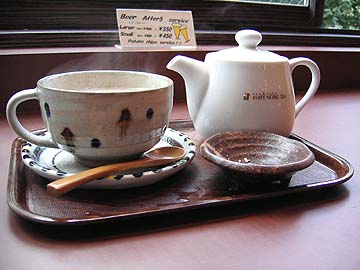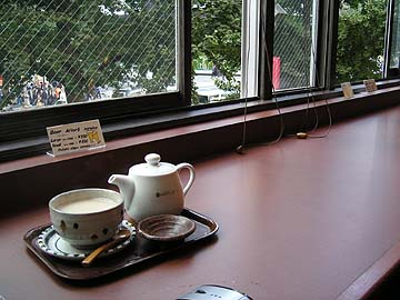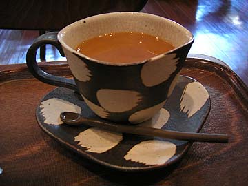 | 紅茶はこんな渋い焼き物のカップで出してくれる。窓から斜め下を覗くと、外神田一丁目交差点が見える。 | ||||||||||||||||||||||||||||||||||||||||||||||||||||||||||||||||