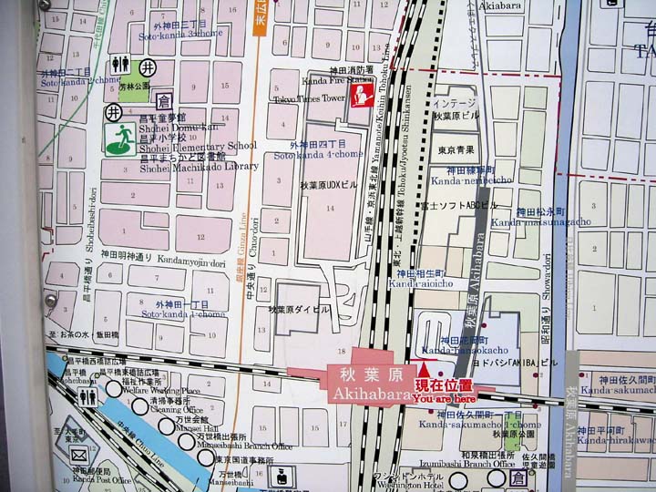 | ヨドバシマルチメディアAkibaの周辺地図。秋葉原駅の脇にそびえ立つ。電気街とは、山手線/京浜東北線を挟んで反対側に位置する。 | ||||||||||||||||||||||||||||||||||||||||||||||||||||||||||||||||