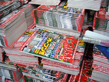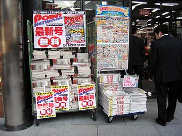 | 入り口脇にはヨドバシカメラ発行の無料情報誌 THE POINT NETWORKが山積みになっている。現在88号が発刊中。たしか、月刊化していたと思う。無料なので自由に持ち帰って構わない。無料情報誌だが、けっこう分厚い。様々な家電特集が組まれており、内容は雑誌並みに充実。さすが、国内最大の家電量販店、販促冊子にも気合いと金がふんだんにつぎ込まれている。 | ||||||||||||||||||||||||||||||||||||||||||||||||||||||||||||||||