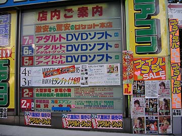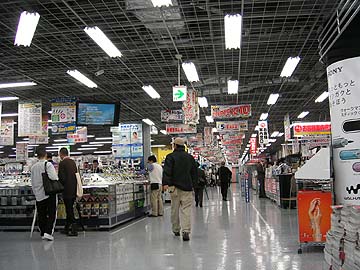 | 最後におまけ。ヨドバシカメラと総武線を挟んだ隣りには、ロケット本店がある。ロケットは1964年に設立された秋葉原の老舗家電店。秋葉原に4店舗展開している。ロケット本店は電気街の反対側に位置するためか、元々客入りが少なかった。それでも、数年前までは全階が家電製品の販売フロアになっていた。2年ほど前に、5階以降がアダルトフロアに入れ替わり、今春には一階が古本やソフト関連フロアに入れ替わった。さらには、ヨドバシのオープンに前後して3階4階がインテリアショップに変身。家電フロアは2階のみとなった。ま、もともと客入りが少なかった店だけに、こうならざるを得なかったのだろう。 | ||||||||||||||||||||||||||||||||||||||||||||||||||||||||||||||||