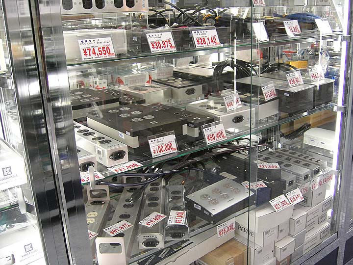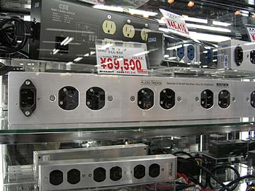 | 電源ボックス/電源タップのショーウインドウ。国産の主な現行製品はほぼ揃っている。 | ||||||||||||||||||||||||||||||||||||||||||||||||||||||||||||||||