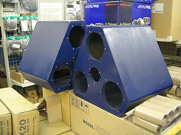 | お、これは!かつてオーディオベーシック誌で掲載された炭山さんの自作スピーカー箱じゃないか。これ、今年の始めに開催された長岡鉄男先生設計スピーカーチャリティーオークションで、唯一買い手がつかなかった出品物。あの時は結局、炭山さんが持ち帰った。再度、ここでお姿を拝見するとは。このスピーカーボックス、フォスの新型防磁ユイーターのフレーム形状に着眼し、製作されたものだ。 | ||||||||||||||||||||||||||||||||||||||||||||||||||||||||||||||||
