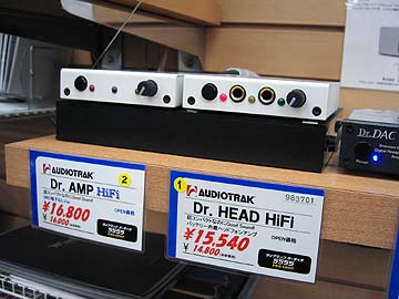 | これはエゴシステムのDr.DAC。密かに人気のDAC内蔵多機能ヘッドホンアンプだ。プリアウトがあるので、デジタルプリアンプとしても使える優れもの。手のひらサイズだ。内蔵DACはなんと96kHzの入力にも対応する。つまり、SACDなどの入力にも耐えうるという事だ。ま、あくまでスペック上の話だが。Dr.DACの特徴はまだある。なんと、単3乾電池4本によるバッテリー駆動ができるのだ。乾電池は天板のネジを外してから、内部の電池ホルダーに挿入する。内部の基盤の中心部分は電池スペースとなっており、外周を回路が埋め尽くしている。もちろん、ACアダプターによるAC駆動もおこなえる。この低価格も魅力だ。デジタル入力は同軸デジタルとTOSが各1系統。同軸デジタル入力があるのが嬉しい。アナログRCA入出力も各1系統ある。オペアンプはソケット形式になっており、交換可能だというのも面白い。とにもかくにも面白いアンプだ。回路構成が単純なため、改造マニアの間ではDr.DACの改造も流行っているみたいだ。Dr.DACのキーワードでネット検索すれば、それらマニアの改造記がたくさん見つけられる。これらのサイトを見る限り、このアンプ、ピュアオーディオ用のデジタルプリアンプとしてもけっこう使えそうな雰囲気。個人的には、フライングモールの黒モグラ(DAD-M100pro)と組み合わせれば、極小マニアックシステムが組めるんじゃないかなと想像してみたりする。 右はエゴシステムのDr.AMP HiFiとDr.HEAD HiFi。タバコの箱を少し大きくしたくらいの小型アンプ。Dr.AMPHiFiは発売以来、その低価格と構造の単純さ、価格のわりに音質が良い(らしい)などから、一部のマニアに愛用されてきた。私は使った事が無いので、Dr.AMPがどれほどのものか分らないが、Dr.DACにはぴくぴくと物欲指数をそそられるものがある。 |