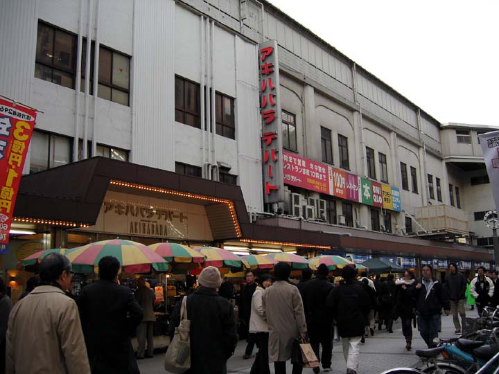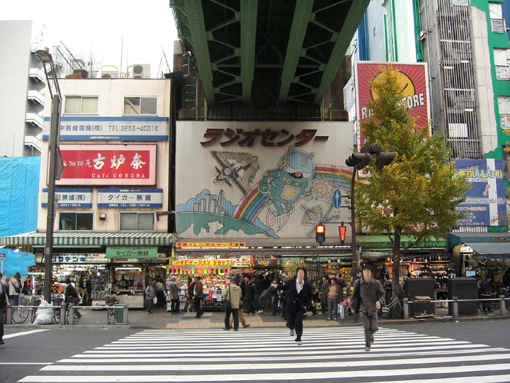 | こちらは総武線高架下、秋葉原駅西口交差点の風景。12月下旬撮影。アキバ通にはお馴染みの光景だ。秋葉原が電気街たる所以はこの高架下のパーツ店たちにある。このパーツ店街がなければ、秋葉原は秋葉原でなくなってしまうだろう。この高架下のパーツ店街は、正確に言うと3つのビルに分かれている。右より、秋葉原ラジオストアー/秋葉原ラジオセンター/秋葉原電波会館。これら3つのビルが寄り添っているのだ。 | ||||||||||||||||||||||||||||||||||||||||||||||||||||||||||||||||