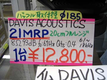| DAVIS ACOUSTICSのスピーカーユニットが3種類入荷。DAVIS ACOUSTICSはフランスのメーカーらしい。上は20cmフルレンジ21MRP。12,800円/本。大きなサブコーンが特徴的。 | ||||||||||||||||||||||||||||||||||||||||||||||||||||||||||||||||