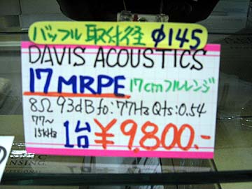 | 上はDAVIS ACOUSTICSの17cmフルレンジ17MRPE。9,800円/本。これもサブコーンを搭載。 | ||||||||||||||||||||||||||||||||||||||||||||||||||||||||||||||||