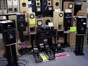 | 4階のハイエンドフロア。一部を区切ってプロジェクターの投影室も設けられている。ハイエンドフロアは海外勢を中心に展示。有名ブランドの売れ筋製品が顔を揃えている。国内産ではアキュフェーズやパイオニアが確認出来る。アバンギャルドのDUOが勇ましい。私が来店した時にはパイオニアの新型フロア型スピーカーS-1EXが鳴っていた。 もう少し写真を撮れれば良かったのだが、まぁこんな感じ。ここでしか扱っていないというような珍しいものは見かけなかったが、エントリークラスからハイエンドクラスまでの売れ筋をほぼ押さえている。品揃えでは秋葉原のオーディオ店と同等だ。今秋発売の最新機種も出揃っている。総評としては、けっこうがんばっているなとという印象。私的には、もう少しホームページを充実させた方がいいんじゃないかと思った。がんばれキャビン大阪屋! |